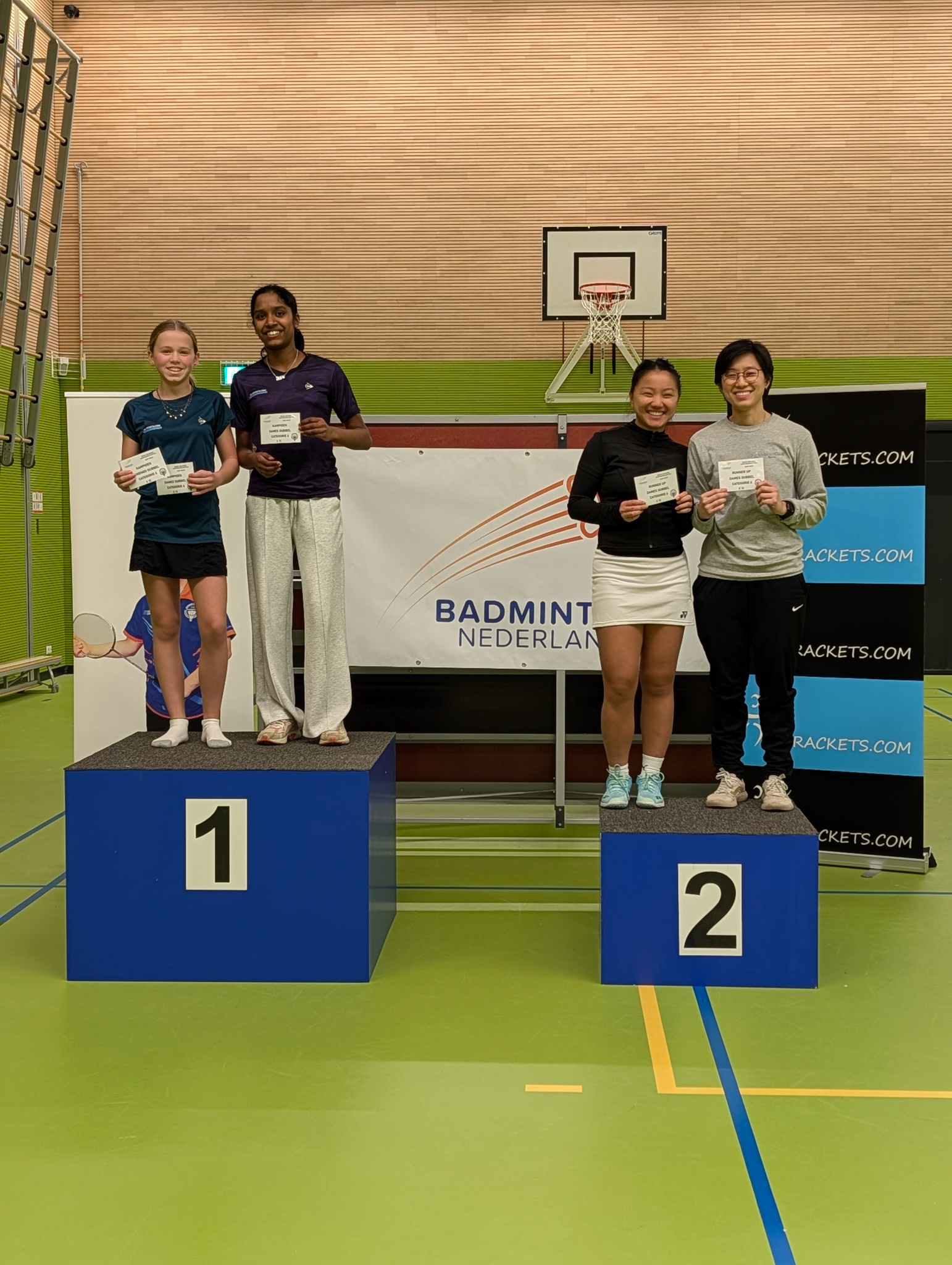 Ronde 2 tegen Stijn Jonker en Kirsten Dedel ging een stuk soepeler. 21-12, 21-17 - lekker gewonnen! En in de kwartfinale tegen Terence Hau en Joey Tjan waren we echt on fire: 21-17, 21-6. Easy peasy! π€©